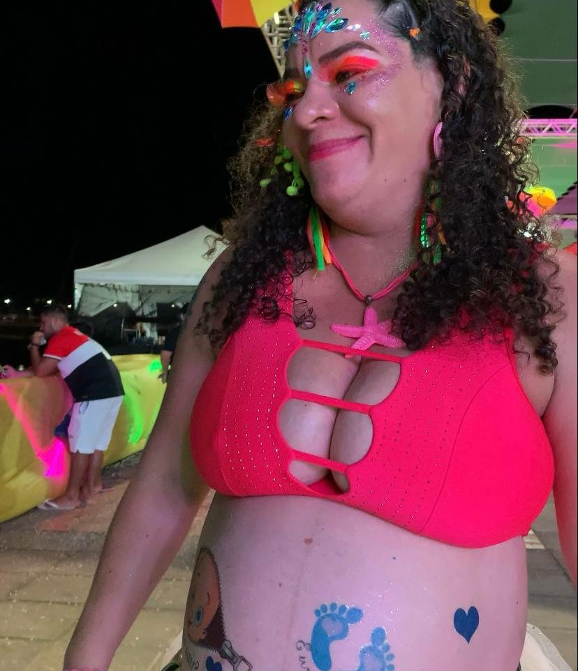 A gestante mostra que a maternidade não impede que possa se divertir e festejar. O carnaval de Rio Branco continua até terça-feira, 13, celebrando a vida e a diversidade.